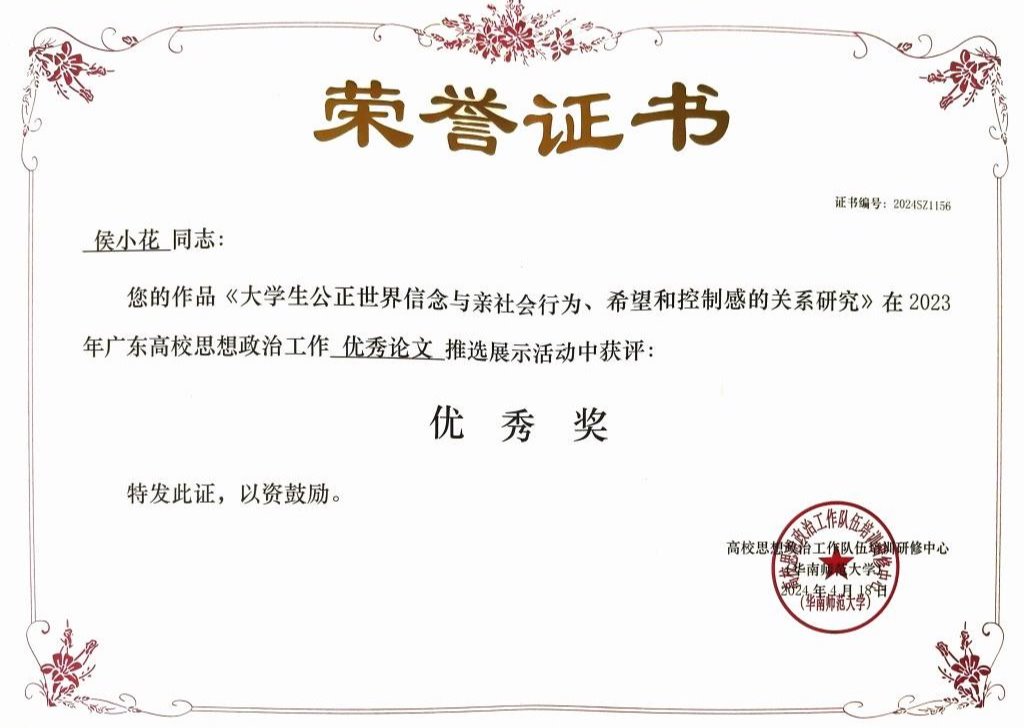 《大学生公正世界信念与亲社会行为、希望和控制感的关系》 |