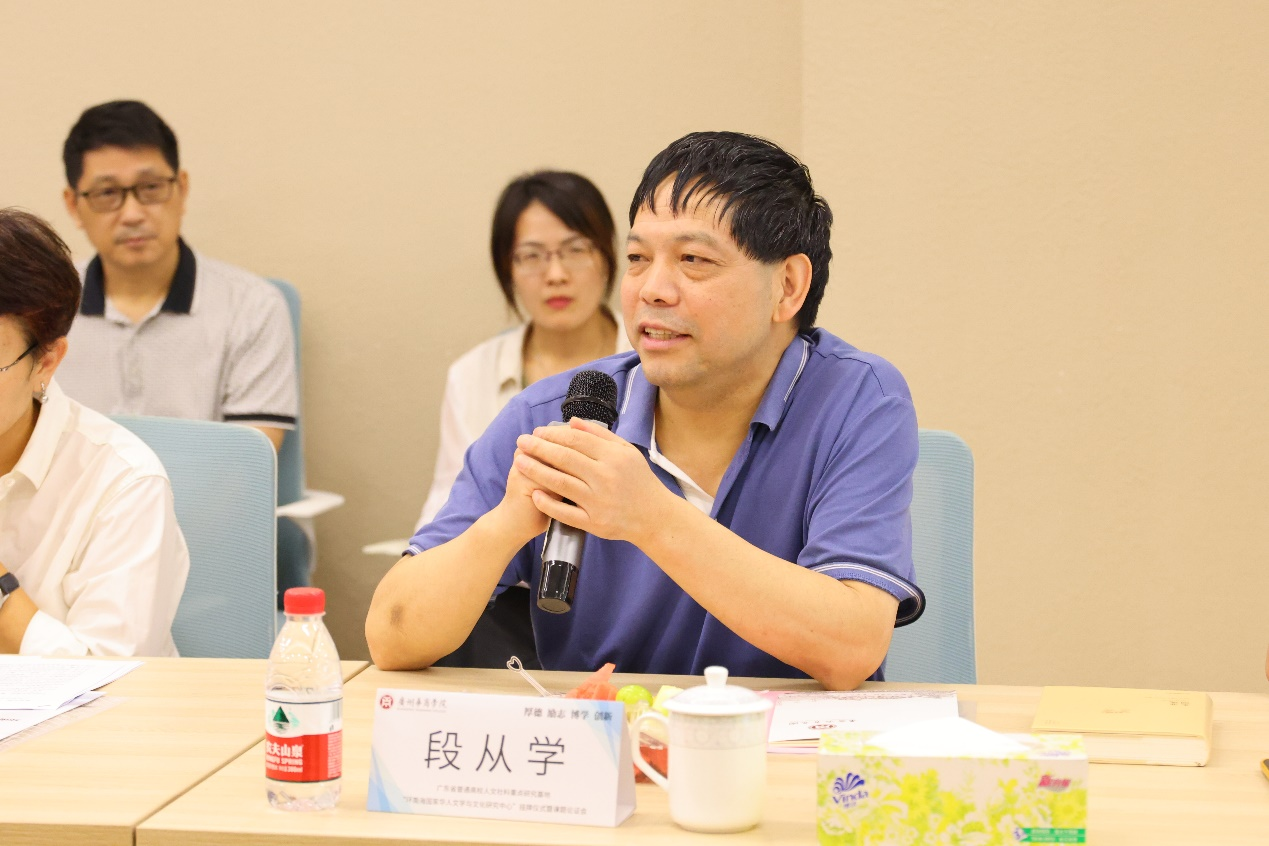 最后,学术委员会主任委员王列耀教授就研究中心“命运共同体与环南海国家华人文学发展研究”“粤港澳大湾区与环南海国家华人文学互动研究”“广东地域文化与环南海国家华商文化‘环流’研究”“客籍文化、潮籍文化和东南亚华文文学与文化研究”四个研究方向,作了详尽而精彩的论证。