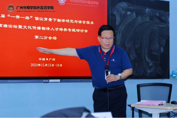 研讨会聚焦‘一带一路’建设翻译研究、语言服务和文化传播翻译人才培养,主题明确,议题多元,内容丰富,学术氛围浓厚。研讨会共安排了10场主旨报告和3个分会场的专题发言与交流。主旨报告的话题包括史料挖掘与学术创新:从《美术通诠》到《文学通诠》,广东革命家对马克思主义的早期翻译与传播,加速外语人才培养、促进国际科技文化交流,人工智能时代翻译教学模式的思考与探索,翻译人才培养的专业化转向与路径,关于学术翻译标准的思考、跨艺术视域下文化翻译与传播,比喻性谚语翻译策略的语言认知研究视角、区域国别视角下阿拉伯国家青年群体中华文化传播、让古老文明的智慧照鉴未来等。各位专家或宏观或微观地从多个维度和不同视角就“一带一路”倡议背景下的语言服务、翻译研究和文化传播翻译人才培养作了视野开阔、见解独到的精彩发言,引起了与会者的热烈反响。