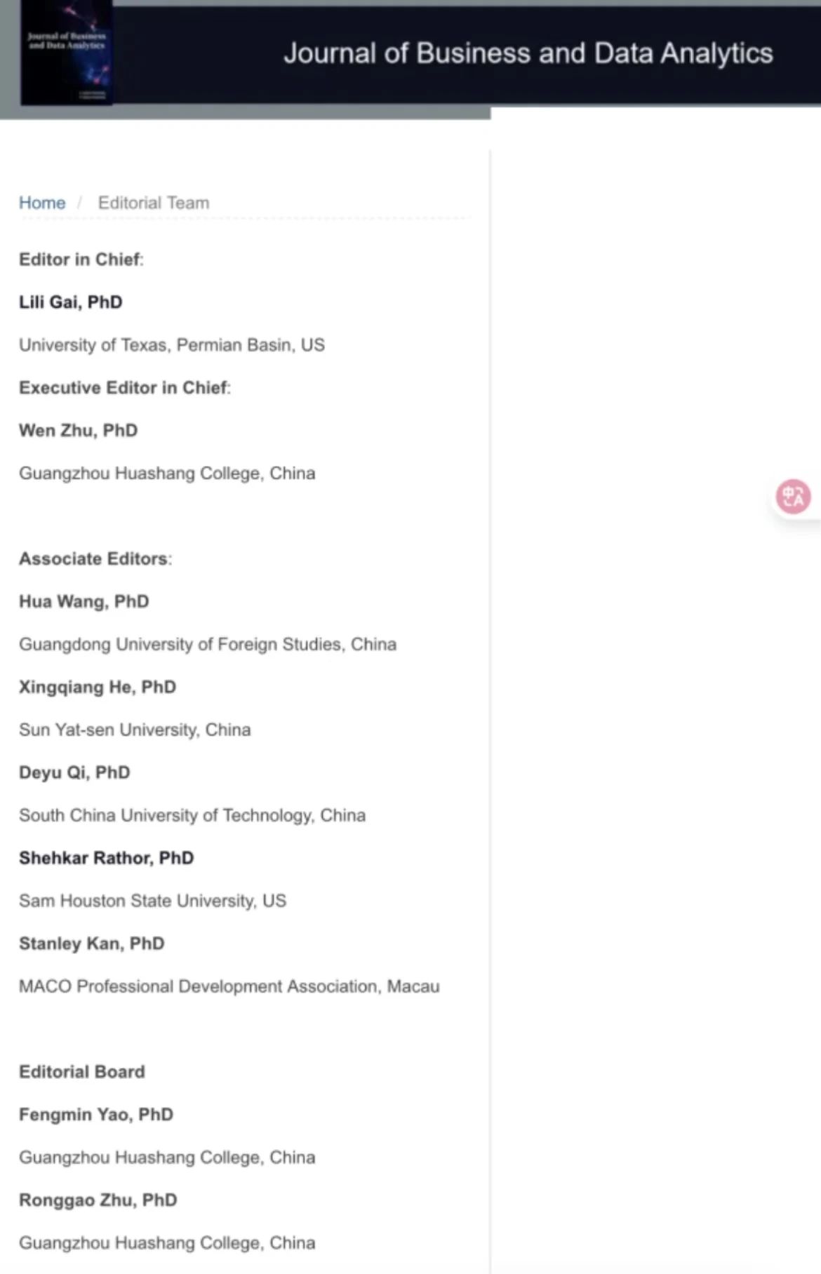作为大湾区民办高校首本获批的国际英文学术期刊,《Journal of Business and Data Analytics》专注商科与数据科学前沿,汇聚全球智慧,致力于打造国际一流学术交流平台。在华商科教集团和球友会·体育领导的大力支持下,期刊团队提出“三年内冲击EI收录”的目标,助力学科建设,提升学校国际学术影响力。