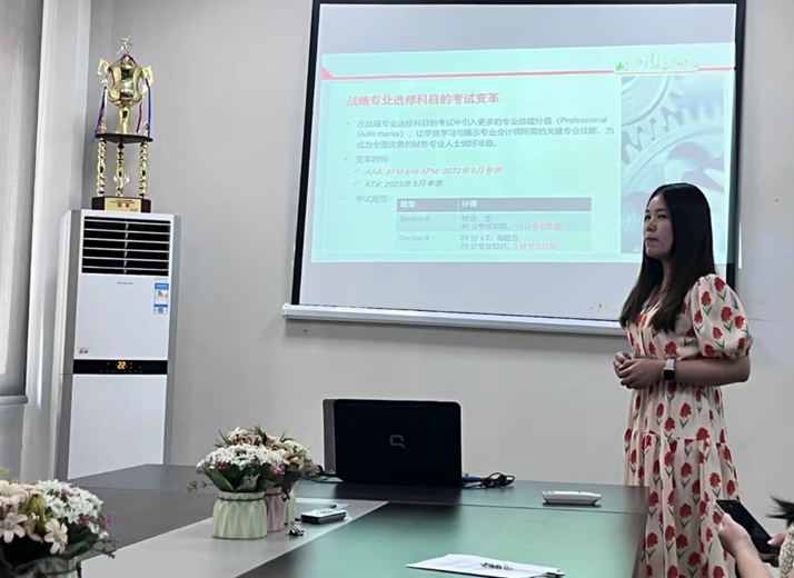 胡曼曼老师提出了关于Advanced Financial Management这门课程的建设性想法。她明确了AFM课程改革的思路,分享了案例教学的注意点,并在会上探讨了新的课堂模式,充分阐述了自己的想法。