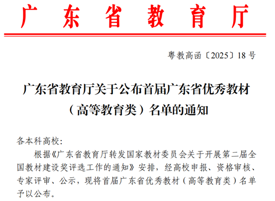 近日,广东省教育厅完成了首届广东省优秀教材(高等教育类)的评选工作,公示期已顺利结束,正式名单尘埃落定。球友会·体育在此次评选中表现卓越,两部教材成功入选,这无疑是学校教育教学工作的重大成果,彰显了我校在教材建设领域的深厚底蕴与强劲实力。