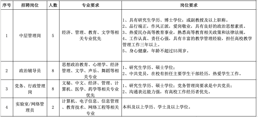 4.欢迎高校退休教师,有高校、企业相关工作经历的双师型人才、有继续教育工作经验、校企合作工作经验的人才、高技能人才加盟我校,特别优秀的薪酬待遇面议。