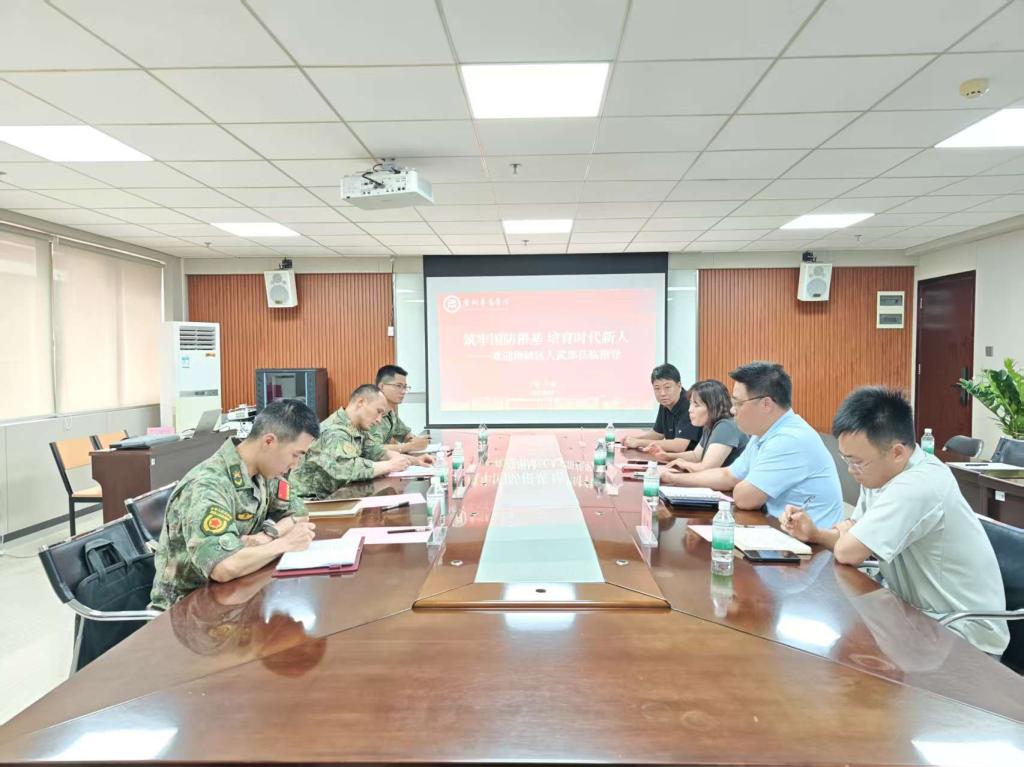 我校党委学工部部长、武装部部长黄国富同志代表学校对区武装部一行的到来表示热烈欢迎,对区武装部一直以来对我校的征兵工作和军训工作的关心支持表示感谢,并简要介绍了我校近年征兵工作和国防教育工作的主要做法和工作经验。区武装部杨从辉部长对我校历年来的征兵工作给予充分肯定,感谢学校多年来为国防事业输送优质兵员,与区征兵办共同推动征兵工作高质量发展。
