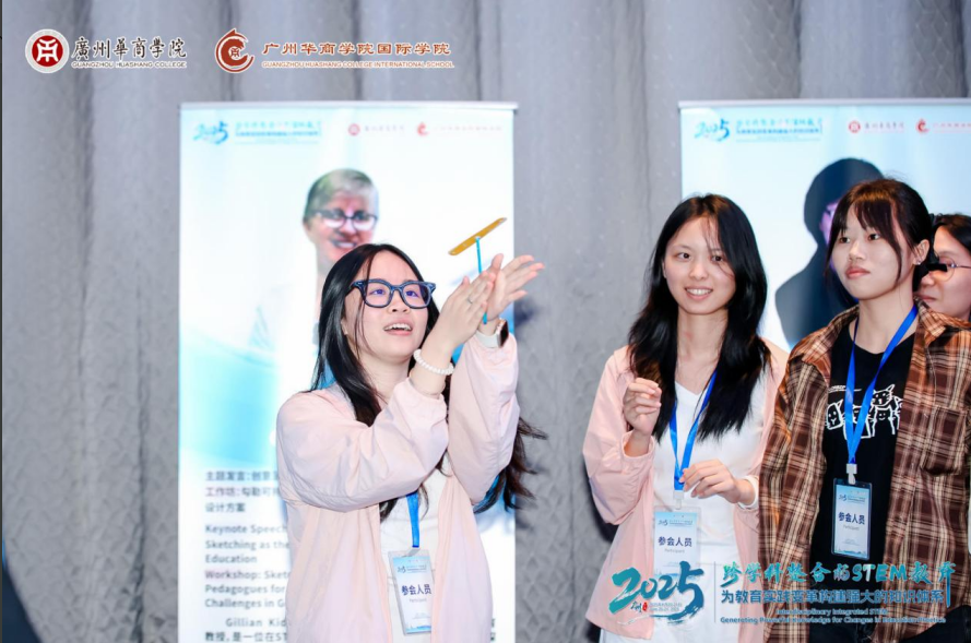 Kidman教授和Hazel Tan博士以“创意落地:素描驱动STEM教育的设计思维”为题,阐释了素描作为可视化工具,如何贯穿STEM设计思维全流程、实现激发创意、具象化概念到迭代优化方案的全过程,并通过案例分享和现场大学生现场参与制作中国传统玩具竹蜻蜓,展示抽象设计思维的可教可学实现路径,为STEM教育注入了创意实践活力。