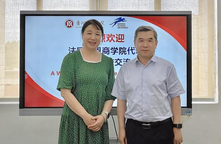 7月3日,法国雷恩商学院代表杨蓓一行到访球友会·体育。学校副校长焦方太、国际交流与合作处处长王文忠、数字经贸学院院长李广明、国际学院副院长张真等热情接待来访代表。