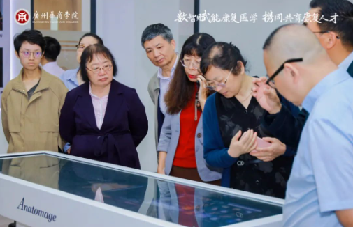 健康医学院师生在工作人员引导下,实地观摩了人工智能数字化虚拟解剖系统。该系统运用前沿AI技术,构建沉浸式解剖学习场景,助力学生直观掌握人体解剖学复杂知识体系。