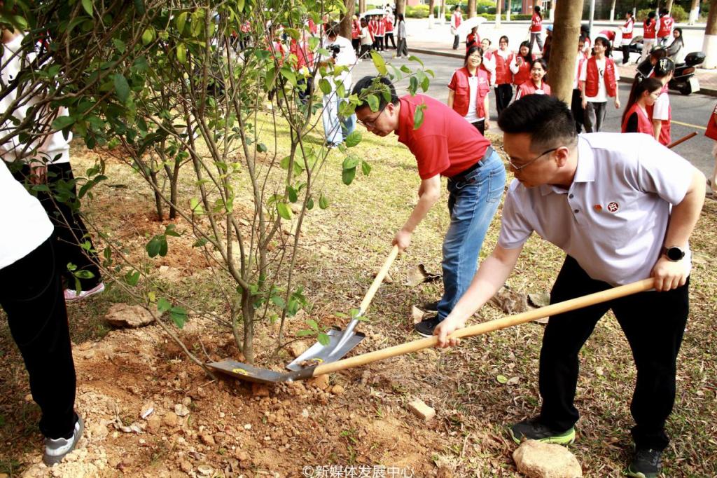 启动仪式后,相关单位、部门领导干部及三院校师生等来到厚德楼参加植树护绿活动。