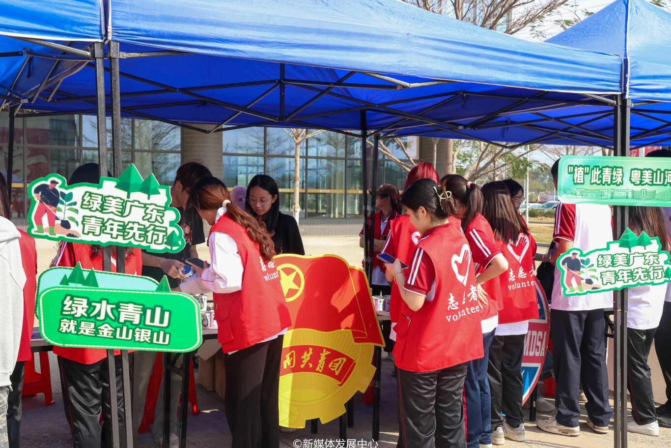 此外,肇庆校区现场还设置了绿美生态活动互动摊位。同学们通过参与相关游戏、领取绿植种子、互动交流,树立生态环保意识、根植为绿水青山贡献力量的理念。