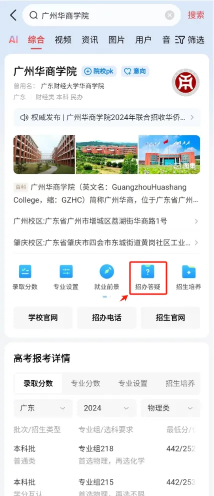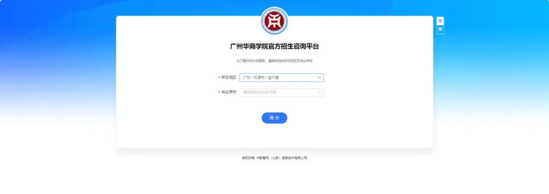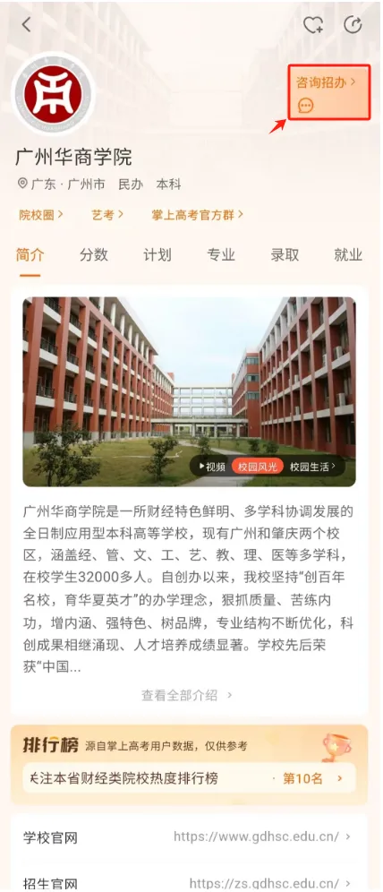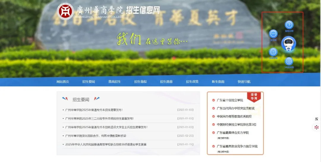 方式二:球友会·体育招生信息网登录球友会·体育招生信息网(网址:https://zs.gdhsc.edu.cn/),点击右侧“智能机器人小招”,在登录界面完善基础信息后即可在线咨询或留言。