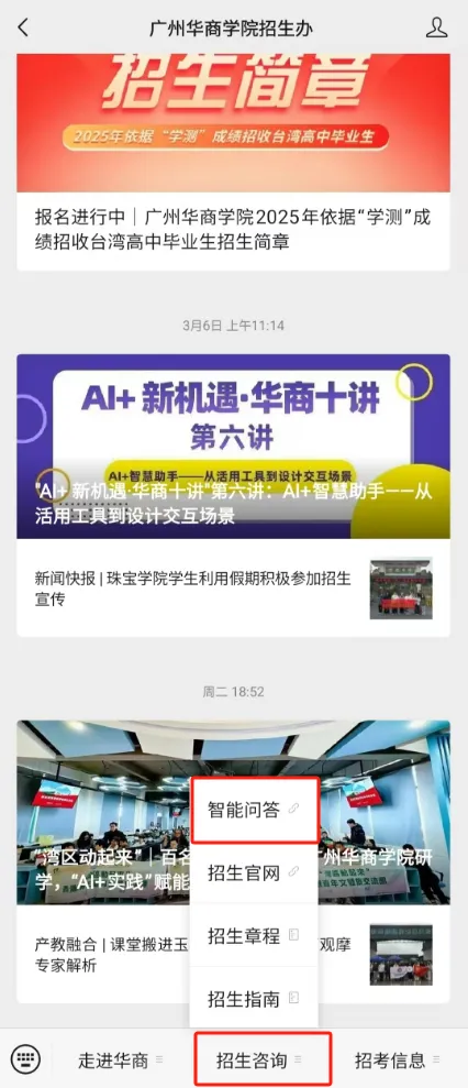 那么,如何体验呢?很简单!只需通过以下方式,即可轻松进入我们的智能招生问答系统: