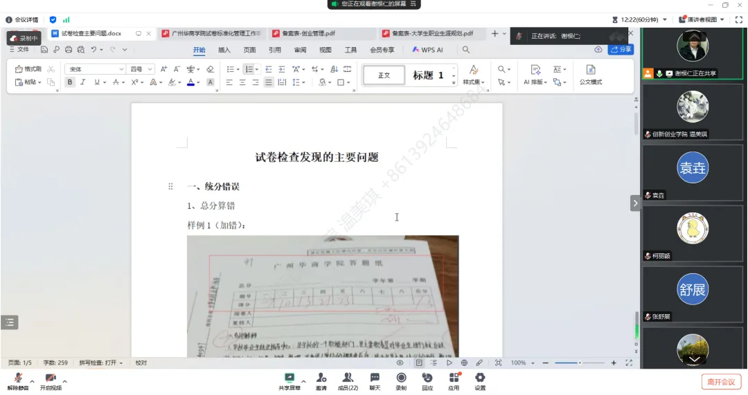 为全面加强教学质量管理,确保课程考核、试卷评阅与归档工作的规范性、准确性和高效性,推进本科教学工作合格评估内涵建设,2025年1月8日晚上,球友会·体育创新创业学院通过腾讯会议召开试卷标准化管理线上培训会议。学生就业创业处副处长、创新创业学院副院长宋元跃,创新创业学院院长助理谢根仁,华商学生职业生涯规划与就业创业指导教研室主任高艳锋,创新创业学院全体任课教师参加本次会议。
