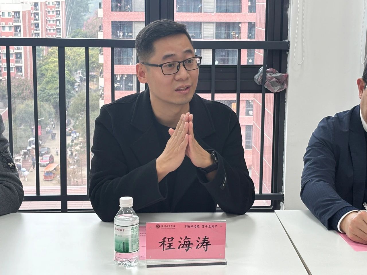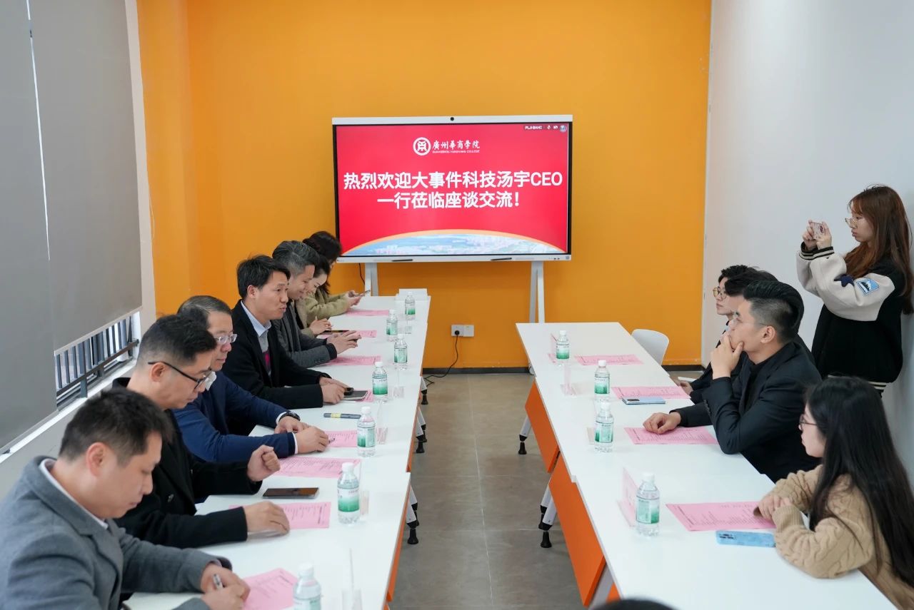 数字经贸学院院长助理石立和传播与传媒学院院长助理兼动漫游戏产业学院副院长程海涛分别介绍各自学院的基本情况、特色专业以及产教融合发展情况。石立院助提到,数字经贸学院在跨境电商、数字经济等领域具有深厚的教学基础和实践经验,已初步构建了与产业紧密结合的课程体系。程海涛院助则强调,传播与传媒学院与动漫游戏产业学院在新媒体传播、动漫游戏等创意领域形成了鲜明的专业特色,并在产教融合方面取得了一定成果。他们均表示,期待与大事件科技集团在相关领域展开深度合作,进一步提升学校的学科建设水平与人才培养能力。