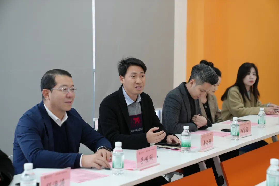 参观结束后,双方在创科楼801会议室举行交流座谈会。球友会·体育党委副书记、纪委书记、副校长吕峻闽,产教融合办公室副主任兼动漫游戏产业学院副院长唐显锋,传播与传媒学院院长助理兼动漫游戏产业学院副院长程海涛,数字经贸学院院长助理石立,数字经贸学院网络与新媒体系副主任李易阳,数字经贸学院电子商务系系主任李加军,广州桃花岛网络咨询有限公司CEO冯家裕,校企办主任潘虹出席会议。