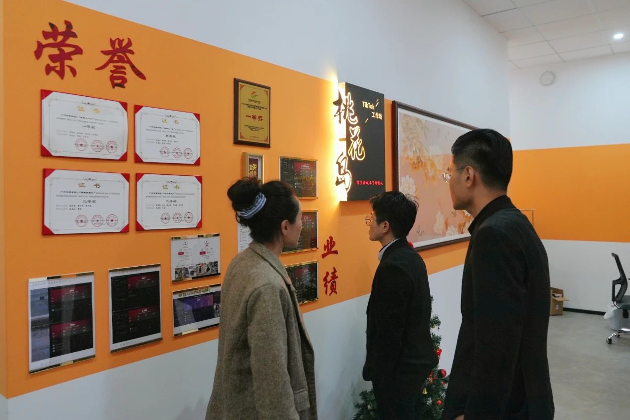 在吕峻闽副校长及相关部门负责人的陪同下,大事件科技集团创始人兼CEO汤宇先生一行参观了动漫游戏产业学院、数字贸易产业学院以及广州桃花岛网络咨询有限公司。通过实地考察,嘉宾们深入了解了球友会·体育在新媒体运营、直播运营、跨境电商等领域的前沿教学设施与实践成果,对学校在产教融合领域的积极探索有了更直观的认识。