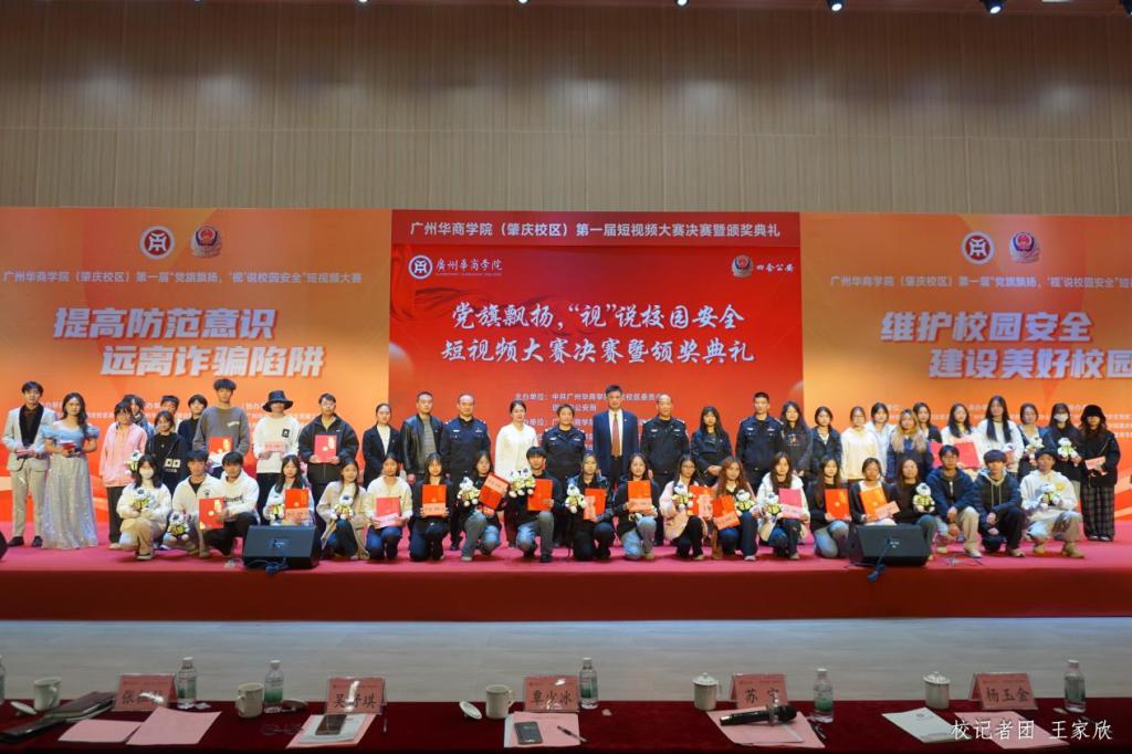 12月19日下午,球友会·体育(肇庆校区)第一届“党旗飘扬‘视’说校园安全”短视频大赛决赛暨颁奖典礼在1号楼报告厅圆满落下帷幕。球友会·体育肇庆校区党委书记苏宁,党委副书记、管委会常务副主任覃少冰,四会市公安局党委委员、政工室主任杨玉金,四会市禁毒办副主任、禁毒大队教导员吴舒琪,四会市公安局新江派出所副所长张祖柱及相关单位代表出席了本次活动。