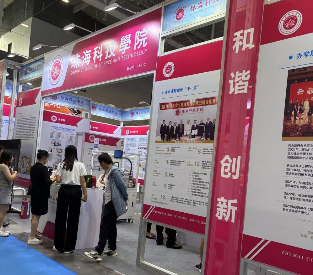 在众多展位中,唐显锋副主任一行特别参观了与本校性质相似的民办应用型高校——珠海科技学院的展区。他们仔细观察、了解了该校在产教融合方面的先进做法和成功经验,并与珠海科技学院的代表进行了深入交流。双方探讨了如何进一步推动产教融合、提高教育质量和培养适应市场需求的人才。