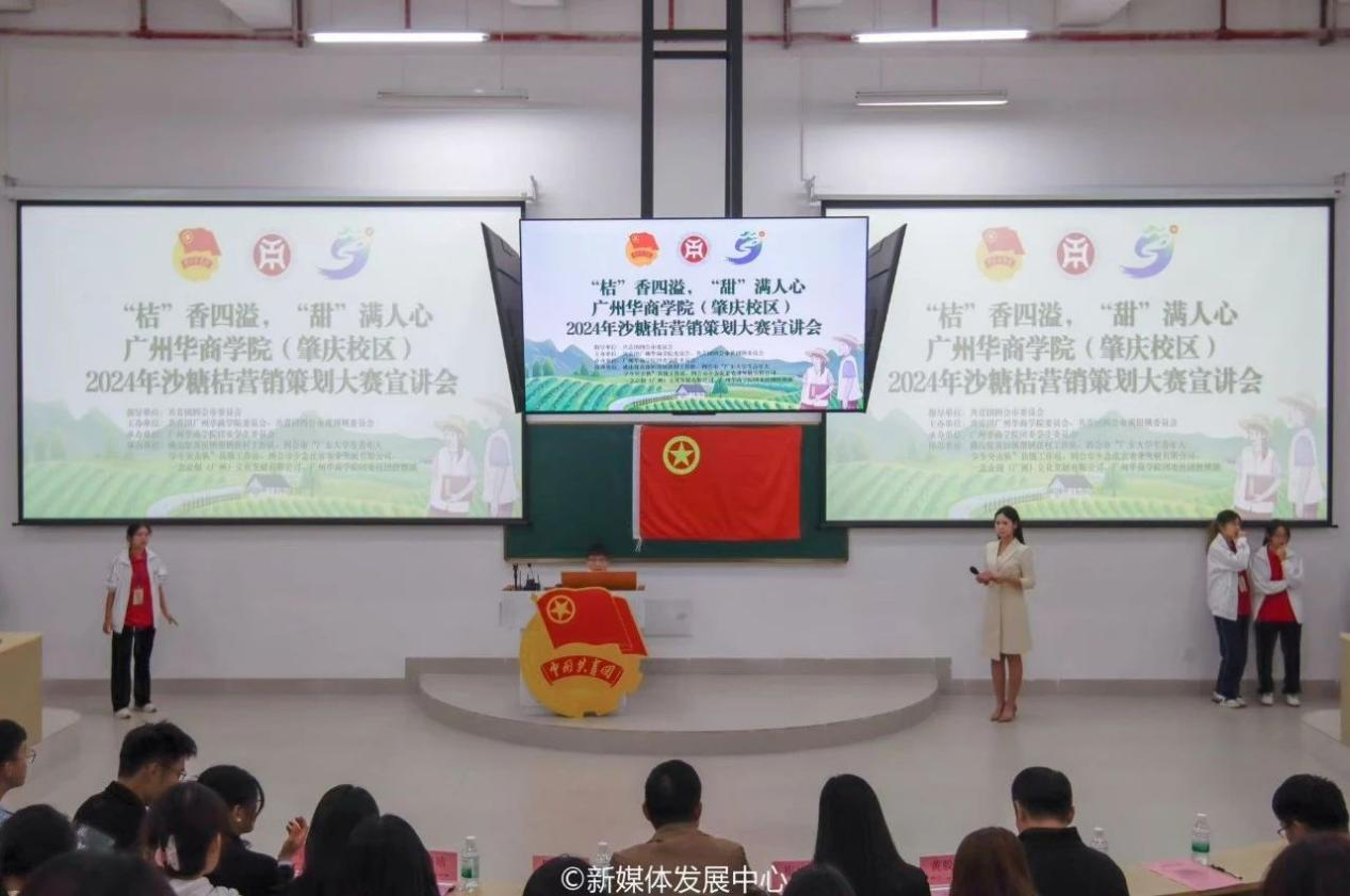 为贯彻落实党的二十届三中全会精神,进一步深化广东青年大学生“百千万工程”突击队行动,加强校地共建,助力四会市建设加力提速,推进黄田镇产业发展,11月27日晚上,“桔”香四溢,“甜”满人心——球友会·体育2024年“走进黄田”新媒体+助农大赛宣讲会在肇庆校区16号楼312举行。