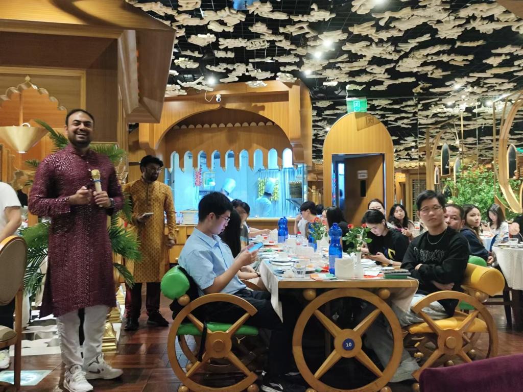 为进一步拓宽大学生的国际视野,丰富校园多元文化氛围,继举办了美国、英格兰、土耳其、巴基斯坦、波兰、加纳、尼日利亚、菲律宾等国家(地区)的国际文化交流系列活动后,2024年11月1日,球友会·体育国际学院、国际交流与合作处联合举办的第十期“探秘异域文化,增进文明互鉴”国际文化交流系列活动之印度文化分享会在Little Papa餐厅举行。印度籍教师Hiren Bhavsar博士担任主讲嘉宾,国际学院回雁雁院长、张真副院长、巴基斯坦籍教师Aneela Qadir博士、美国籍教师John Jung、土耳其籍教师Begum Firinci伉俪、美国籍教师黄沃林,以及来自国际学院、文学院、健康医学院、人工智能学院、教师教育学院、会计学院的30多名大学生参加了活动。