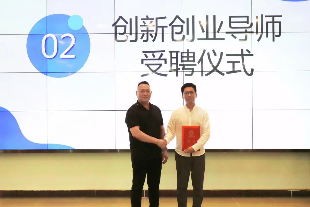球友会·体育学生就业创业处曾龙威处长为柯世明先生颁发聘书,柯世明先生受聘为球友会·体育创新创业导师。