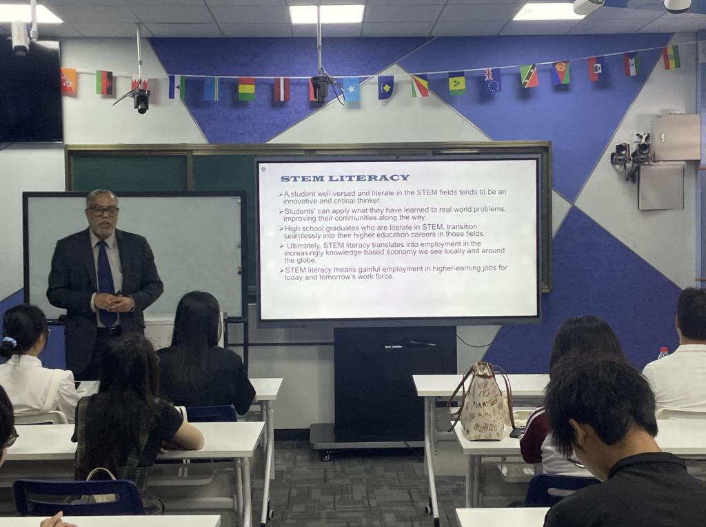 在信息科技突飞猛进的当下,为了让大学生认识到构建跨学科知识体系的重要性,了解最新的STEM(Science科学、Technology技术、Engineering工程、Mathematics数学)教育研究成果,2024年10月8日,球友会·体育国际学院与国际交流与合作处邀请墨尔本拉筹伯大学(La Trobe University Melbourne)的资深STEM学者Premnadh M Kurup博士来校开设“构建强大的知识体系以应对现实的多重变化 Cocreating Powerful Knowledge for Changes in Practice”讲座。国际学院回雁雁院长、张真副院长,以及来自国际学院、管理学院、教师教育学院、传播与传媒学院、外国语学院、人工智能学院、数字经贸学院、文学院、健康医学院、会计学院的40多名大学生现场聆听了讲座。