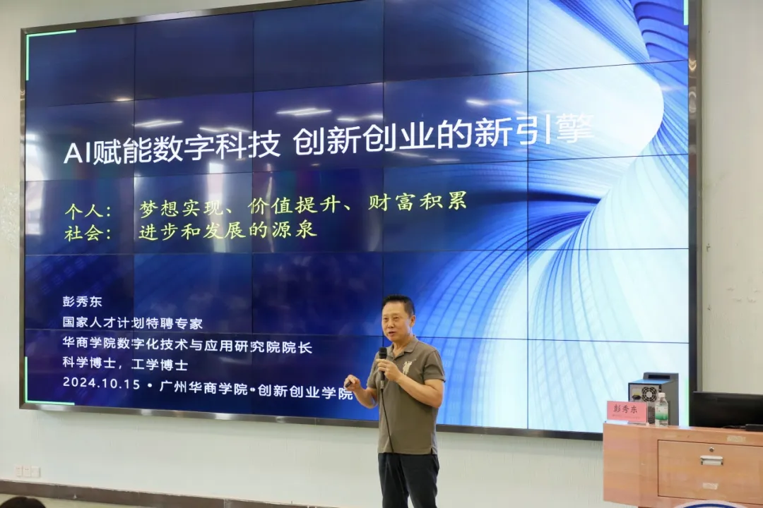 本次讲座的主讲人是国家级人才计划特聘专家、华商数字化技术与应用研究院院长彭秀东教授。莅临本次讲座的嘉宾有球友会·体育学生就业创业处宋元跃副处长、创新创业学院陈欢老师。