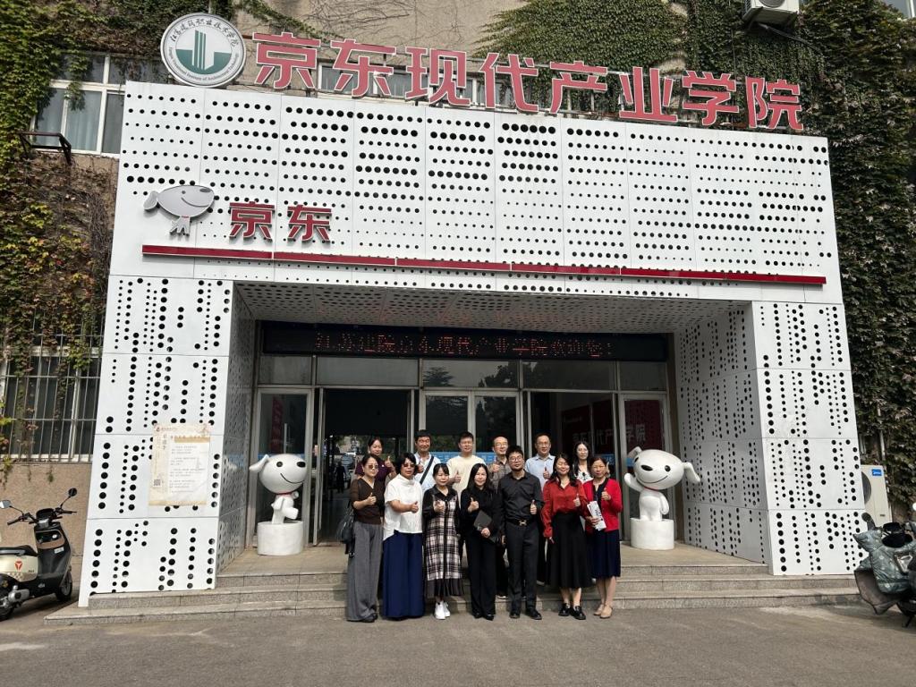 第三站,考察团走进宿迁学院,经管学院许忠荣院长详细介绍了该校的办学特色及与京东集团的深度合作历程。宿迁学院是京东系产业学院的标杆,自2010年起便与京东集团携手,共同构建了现代产业学院,覆盖软件工程、机械制造等多个学科领域,实现了学科的交叉融合与人才培养的创新,在人才培养、教学资源共享、实习实训基地建设、师资队伍建设、产学研合作等方面均取得了成效。