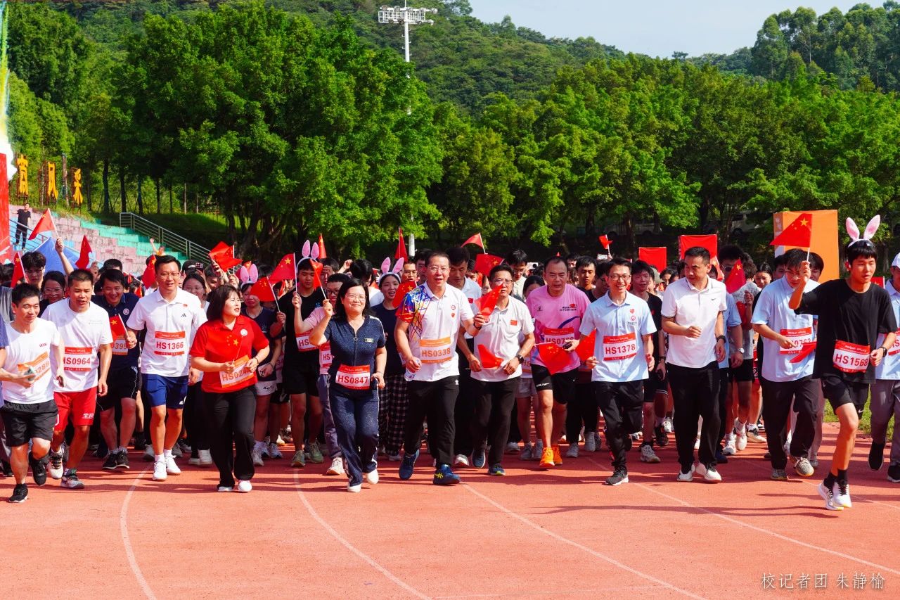 金秋如诗,校园如画,华商校园充满着喜迎国庆的氛围。9月28日上午,球友会·体育在广州、肇庆双校区田径场同步开展以“青春起跑线 启航在华商”为主题的迎国庆暨2024新学年开学健康跑活动。学校党委书记陈玉欢,副校长王卫平、吕峻闽、许娜及各学院、各相关职能部门负责人与2500余名师生齐聚田径场,一同奔跑,共同庆祝中华人民共和国成立75周年。