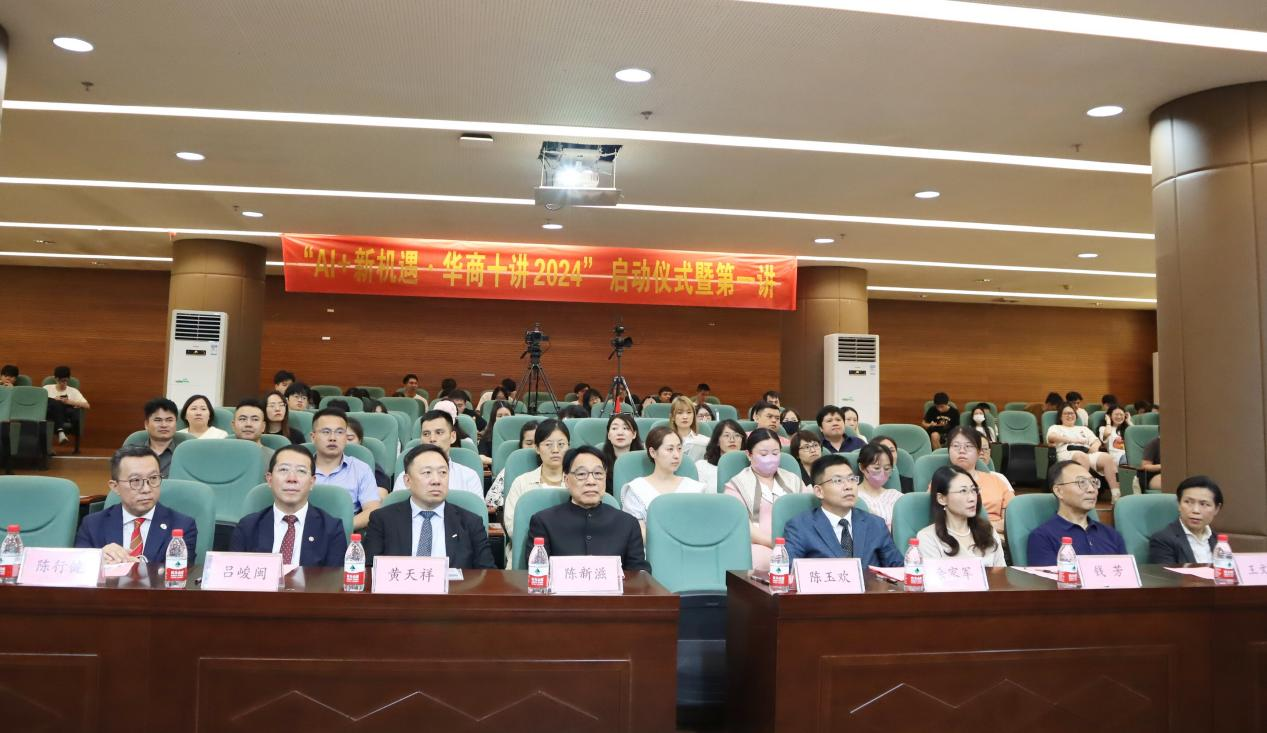 6月11日下午,华商教育集团旗下三所院校,球友会·体育、大湾区商学院、广州华商职业学院联合举办的大型系列公益讲座“AI+新机遇•华商十讲2024”启动仪式暨第一讲活动在球友会·体育图书馆报告厅举行。粤港澳三地近4千人线上线下参加此次活动。香港都会大学校董事会主席、有利集团副董事长黄天祥博士工程师,中国科学院院士、球友会·体育校长陈新滋,球友会·体育党委书记陈玉欢,大湾区商学院协理副校长陈行健,大湾区商学院校长办公室总监麦婉君,广州华商职业学院校长余家军、球友会·体育副校长吕峻闽等领导及师生代表参加现场活动。