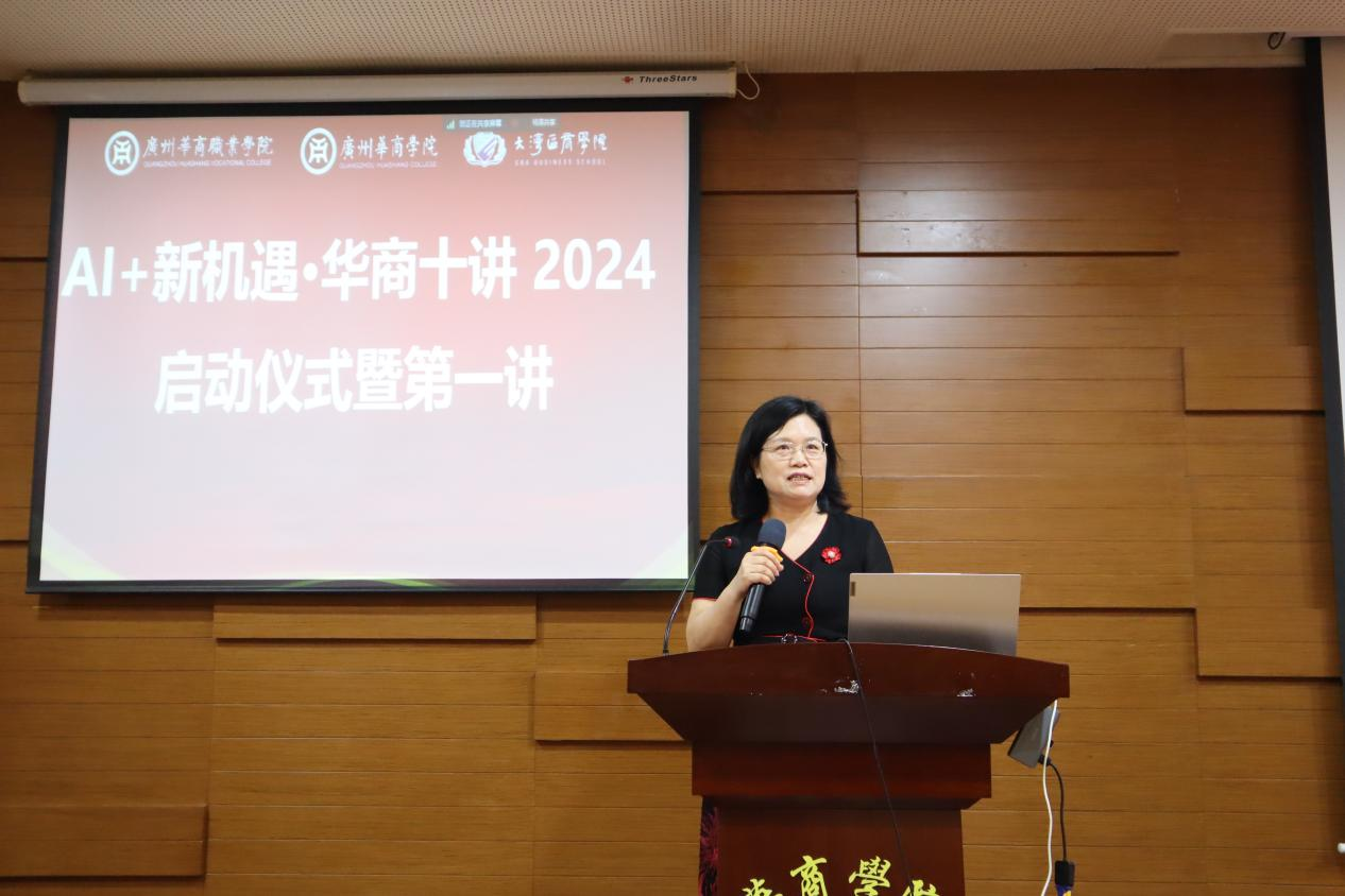 “华商十讲”启动仪式上,球友会·体育党委陈玉欢书记致辞。她指出,当今时代AI技术突飞猛进,给各行业带来了新的挑战和机遇,大湾区的建设、融合日新月异,“一带一路”合作更加深入广泛。AI+大湾区+“一带一路”+各行业,会给我们的经济生活、社会发展,特别是教育工作带来深刻变化,我们要认真探讨和研究,让AI在湾区建设中发挥其突出作用。她表示,要以不同的视角分析AI技术与各行业融合的前景,提高湾区师生“AI能力”,更好地面向“AI时代的职场”。