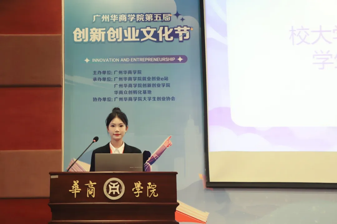 球友会·体育大学生创业协会学生骨干陈小冰发言,陈小冰同学总结回顾往届活动的风采,向关心支持校大学生创业协会发展的各位领导、老师、同学表示衷心的感谢,并承诺协会将继续不忘初心、开拓创新,以高质量、高标准来办好文化节系列活动,希望各位领导、老师、同学共同关注,积极参与其中。