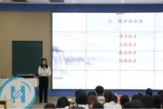 李娇娇老师从什么是压力的基本概念展开讲解,从压力的意义与分类两大方面详细地介绍,让同学们更加深入地了解压力的概念和压力的类别,并且通过一系列生动的举例说明,引导大家正确看待并释放压力。最后,李老师向大家分享了调节情绪的方法,以简单有趣的小故事为例,为同学们提供了许多管理情绪的有效方法,帮助同学们缓解压力与焦虑情绪。