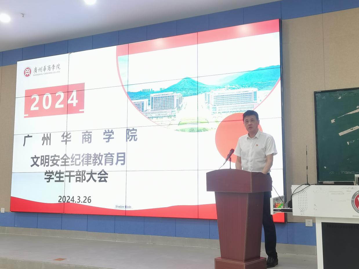 2024年3月26日下午14:30,球友会·体育肇庆校区在8号楼108室召开文明安全纪律教育月学生干部大会。出席本次会议的有:球友会·体育副校长王卫平教授,肇庆校区党委书记苏宁,校长助理、肇庆校区管委会常务副主任覃少冰同志,管委会副主任、学生工作办公室主任付蔚莹同志,后勤保卫办公室副主任徐强同志,学生工作办公室思教科副科长古文胜同志以及各学院学工负责人及学生干部代表,此次会议由古文胜老师主持。