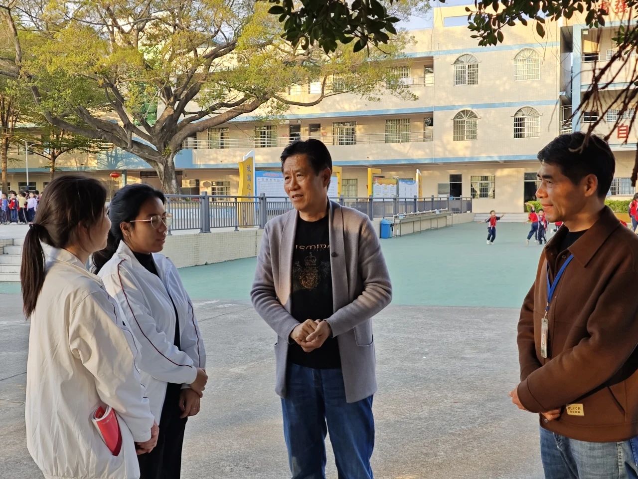 12月5日,为进一步了解小学教育专业见习学生的教学情况,切实关心和帮助教师教育学院见习学生成长成才,球友会·体育教师教育学院院长王金道教授、副院长谭建生教授、张博教授、学院党总支副书记许娜同志与年级副主任江庆基老师一行来到四会市东城街道黄岗小学走访交流。