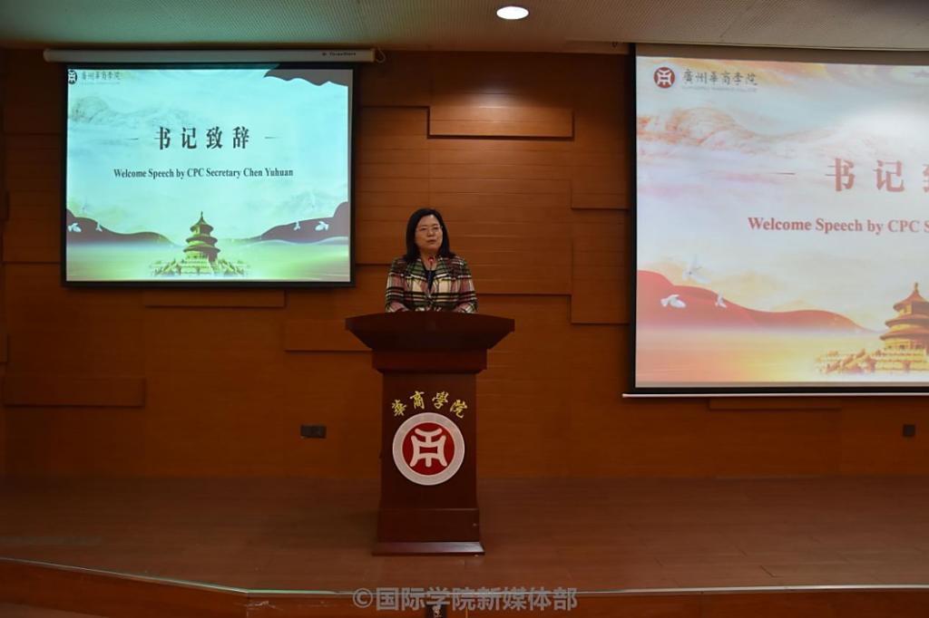 陈玉欢书记致辞表示,这次比赛具有鲜明的时代意义,能够在提高大学生英语水平的同时,帮助其拓宽国际视野,更能够增进对习近平总书记“一带一路”倡议的深入了解,也可以借此契机,向外籍教师并借助他们向世界传递中国声音,展示当代大学生的风采。本次活动在学校十八周年校庆来临之际举办,也是为校庆活动增光添彩。