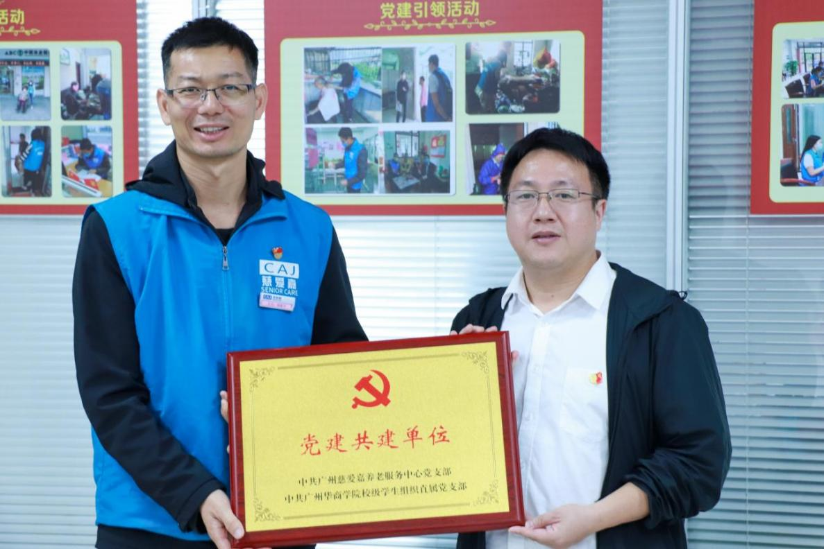 为深入贯彻落实党的二十大精神,强化党建引领和校地共建,培养青年大学生为人民服务的道德观,引导华商青年运用所学知识和技能服务人民,奉献社会,以社会实践基地为载体,大力弘扬社会主义道德风尚,弘扬中华民族尊老敬老的传统美德,营造关爱老年人的良好社会氛围,2023年12月12日下午,球友会·体育党建共建、团员青年实践基地授牌仪式在增城区综合养老服务中心顺利举办。荔城街综合养老服务中心何丽珊主任、广州慈爱嘉养老服务中心党支部徐新年书记、广州慈爱嘉养老服务中心葛芳芳主任、球友会·体育党委统战部副部长黄秋铭同志、校团委书记陈刚同志、校团委夏仲同志携我校“智慧助老”社会志愿服务项目10余名志愿者参加本次仪式。