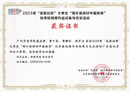 近日,2023年“高教社杯”大学生“用外语讲好中国故事”优秀短视频作品征集与交流活动广东省优秀作品结果揭晓。