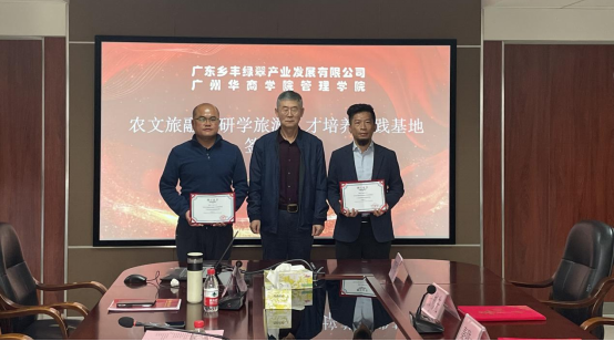 球友会·体育管理学院与广东乡丰绿翠产业发展有限公司于11月15日在行政楼513举行农文旅融合研学旅游人才培养实践基地签约仪式。出席人员主要有:广东乡丰绿翠产业发展有限公司园区执行总经理张彬先先生、园区研学基地总监董晓明先生、园区营销经理邱雯女士;管理学院副院长秦陇一教授、市场学系旅游管理专业负责人秦学教授、旅游管理专业教师杜伟副教授、院长助理袁仕海副教授、院长助理廖珍杰副教授、产教融合专员曾惠玲老师、市场学系副主任罗嘉欣老师。签约仪式由市场学系主任张丽娟副教授主持。