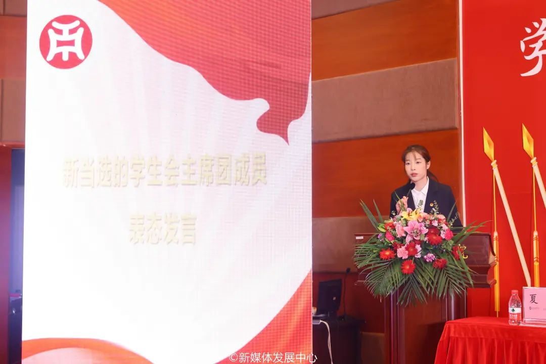 新当选主席团成员尤晓雯表态发言。球友会·体育第三届学生会将以此为基点,全面学习宣传贯彻党的二十大精神,高举习近平中国特色社会主义思想伟大旗帜,秉承全心全意为同学服务的根本宗旨,坚定“从同学中来、到同学中去”的工作方向,努力提升学生会组织的同学满意度、大局贡献度和社会认可度,树立富有理想、关心同学、清新阳光的组织形象。