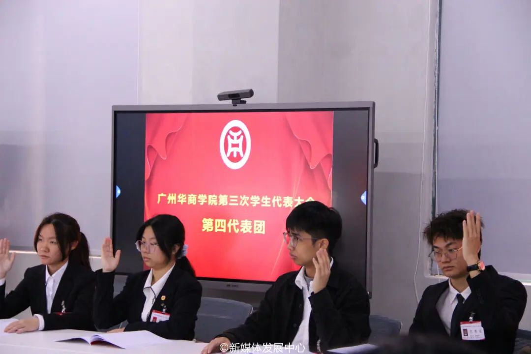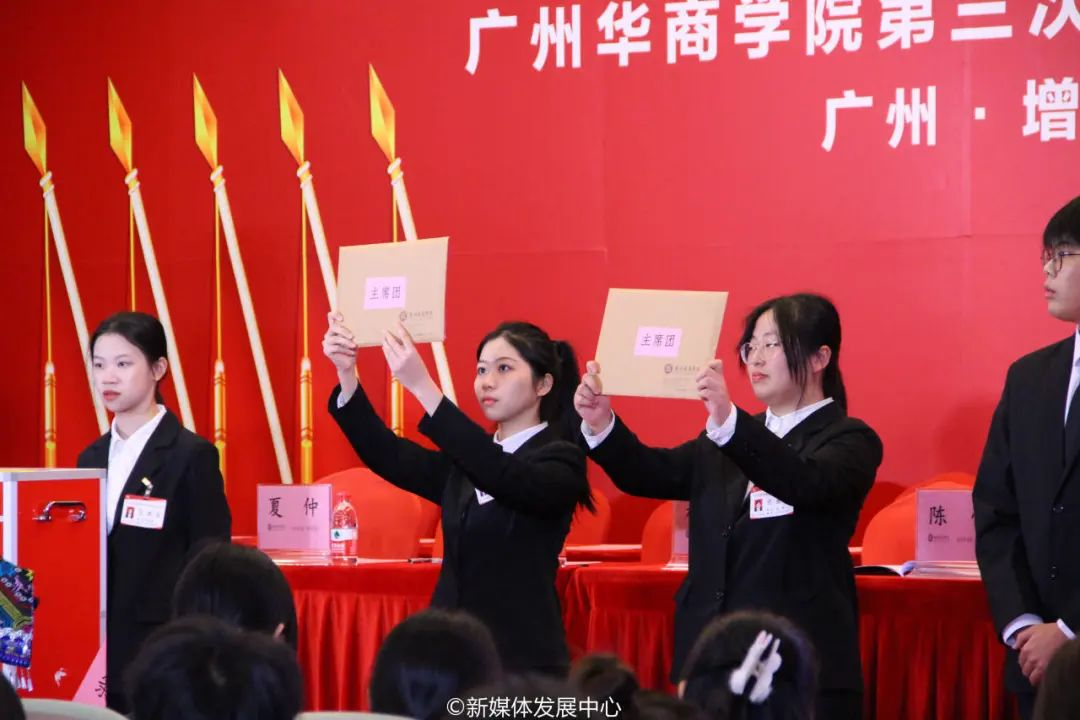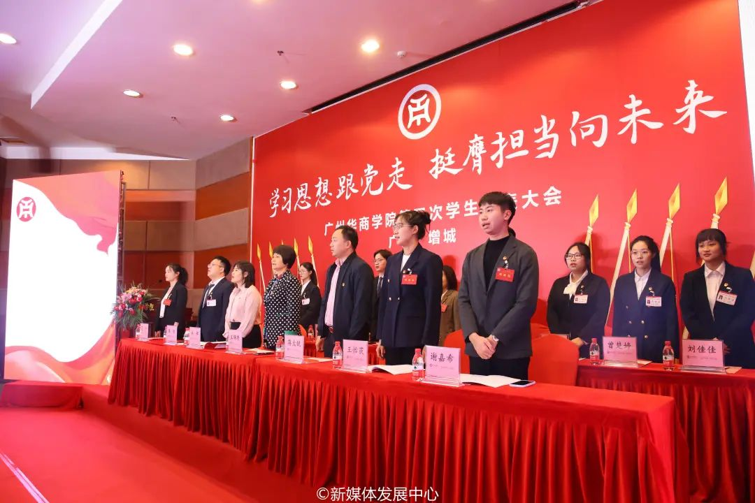 点燃青春火炬,书写未来篇章。高举团旗跟党走,唱响青春梦之歌。为深入学习贯彻党的二十大精神,全面贯彻落实全国学联二十七大工作部署,持续深化我校学生会组织改革,引领华商青年学子在为实现中华民族伟大复兴中国梦的不懈奋斗中谱写青春华章,在学校党委、省学联、学校各职能部门、各学院党委的关心与支持下,12月2日,球友会·体育第三次学生代表大会顺利召开。本次大会广州校区设主会场、肇庆校区设分会场,两校区全程连线直播。