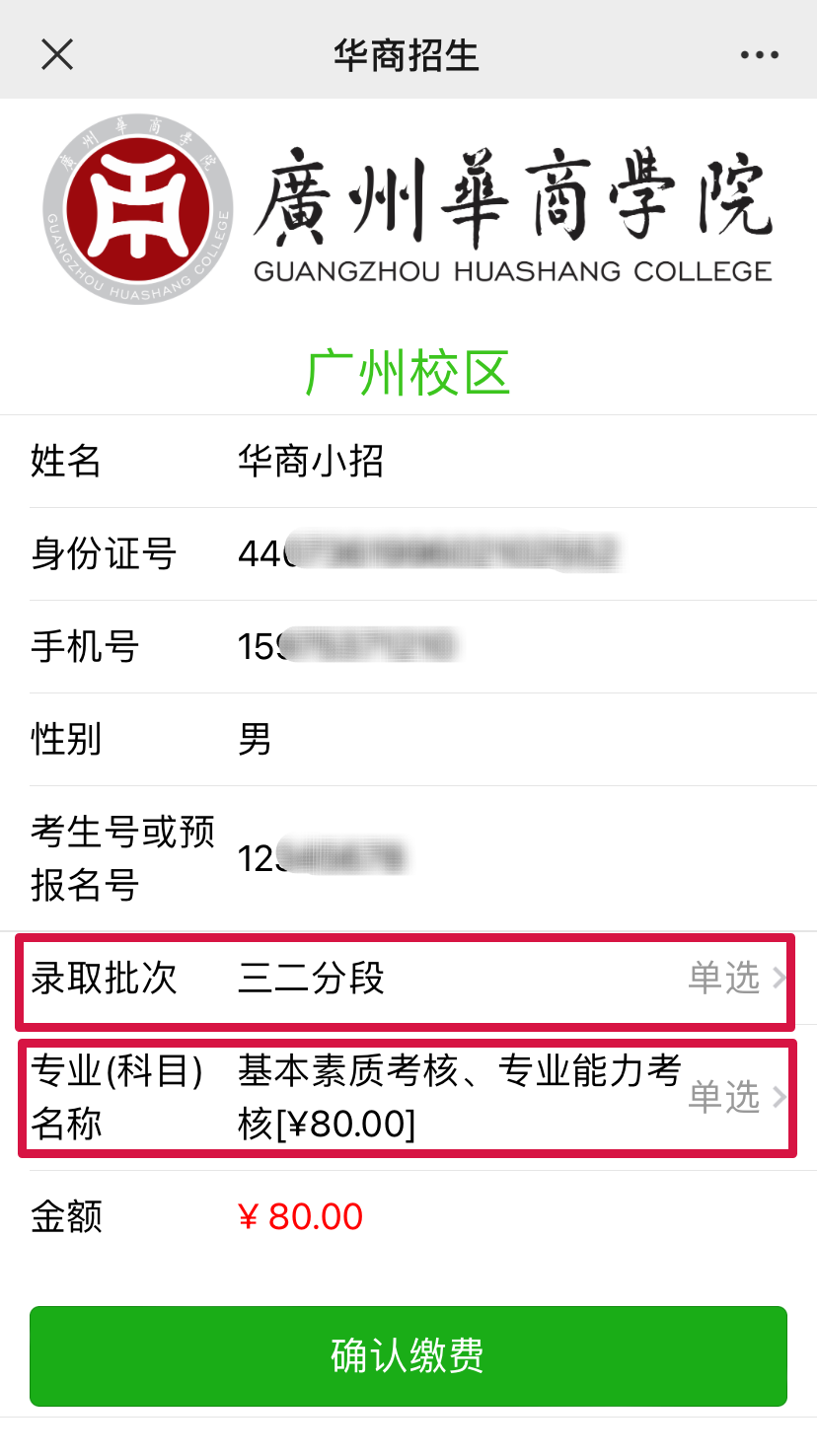 方式1.扫描下方二维码,进入缴费页面;准确填写个人信息,点击“下一步”;选择三二分段批次及科目;核对相应金额,无误后点击“确认缴费”即可。