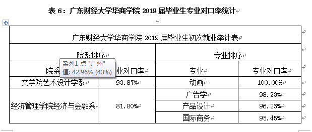 根据广东省教育厅《关于印发2019年广东省普通高等学校毕业生初次就业率统计表的通知》文件,广东财经大学华商学院2019届毕业生初次就业率达97.39%,高出全省普通高等学校毕业生初次就业率2.81%(其中高出全省本科院校平均就业率3.95%)。我校初次就业率在全省独立学院中排名第一位,在全省本科独立学院和民办院校排名第三位。
