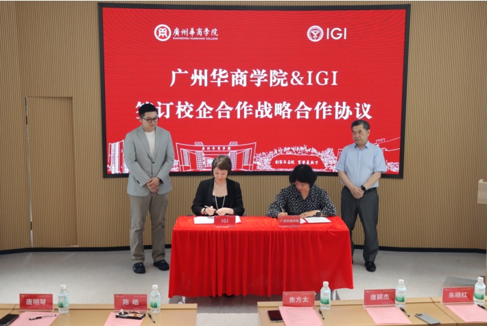 在全场嘉宾的见证下,球友会·体育产教融合办公室主任唐明琴与IGI培训总监陈皓作为双方代表签订战略合作协议。球友会·体育副校长焦方太与IGI企业培训总监唐颖杰作为见证人,共同见证这一时刻。