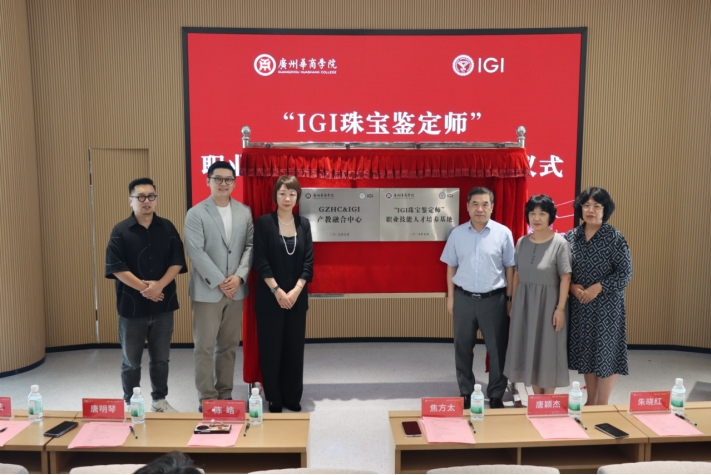 随后,双方为“球友会·体育&IGI产教融合中心”“‘IGI珠宝鉴定师’职业技能人才培养基地”揭牌。焦方太副校长、陈皓总监、唐颖杰总监、唐明琴主任、朱晓红院长、张宪法副院长共同为两个平台揭牌。据悉,这两个平台将聚焦珠宝鉴定、设计、行业前沿技术等领域,为师生提供鉴定课程培训、企业导师资源及行业认证支持,推动教学与产业需求的精准对接。