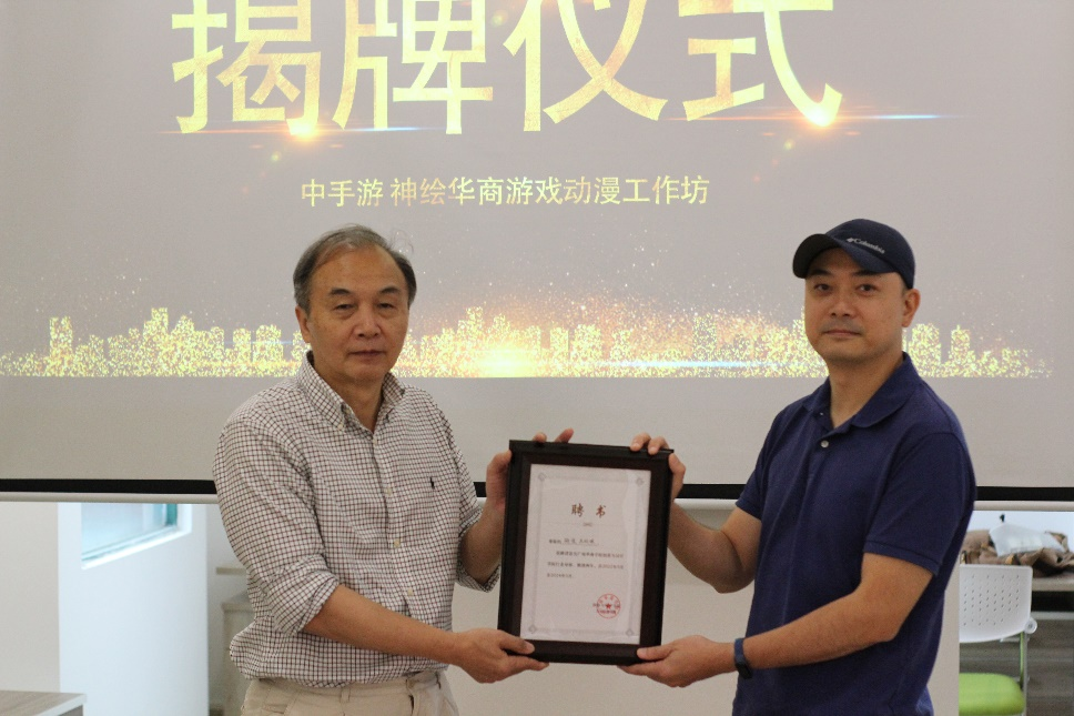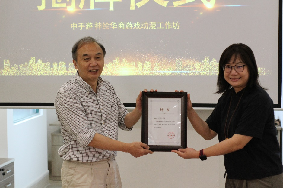 为促进双方合作与实践教学,球友会·体育创意与设计学院聘请中手游神绘公司总经理骆俊、美术总监刘畅担任 “行业导师”,王列耀副校长为其颁发聘书。