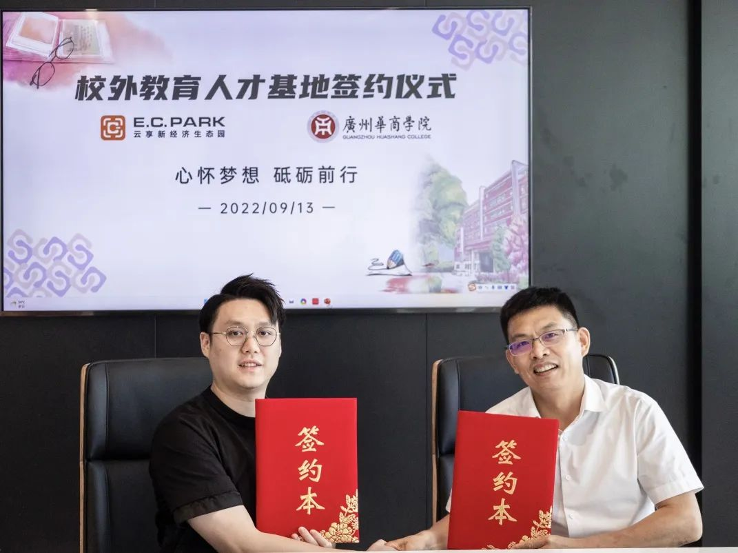 深化产教融合改革,共谋校企合作新篇。为促进教育链、人才链与产业链、创新链的相辅相成,推动我校校企合作、产教融合再度开花结果,与企业深入交流合作,促进华商学子技能提升、稳岗就业。9月13日上午,球友会·体育副校长张捷率队,与经济贸易学院院长李广明,管理学院院长李招忠,校长助理、创新创业学院常务副院长余家军及相关工作人员一行前往广州云端共享实业有限公司云享新经济生态园(下称:E.C.Park)举行校企战略合作签约仪式暨教学实践基地挂牌仪式,共同开展产教融合项目合作及“校外教学实践基地”建设。
