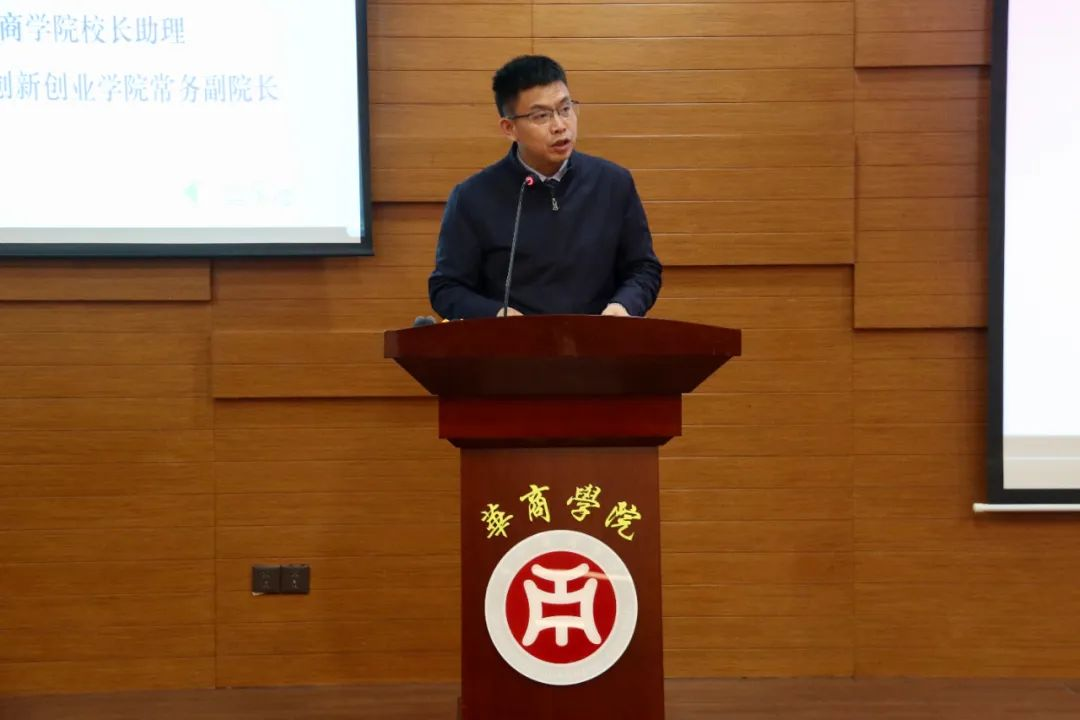 球友会·体育校长助理、创新创业学院常务副院长余家军博士致辞。余家军常务副院长表示,学校高度重视大学生创新创业教育工作,积极鼓励同学们参加各级各类创新创意创业大赛,深入贯彻“以赛促学、以赛促教、以赛促创”。大赛的举办,是学校扎实推进创新创业教育的又一生动实践,是创新人才培养模式的一次积极探索。他还强调,球友会·体育、广州华商职业学院与广州乡村振兴控股集团有限公司一直保持着紧密的联系,通过举办创新创业实践基地授牌仪式,共建创新创业实践基地,互相支持、互相渗透、共同培养创新人才,为华商学子实习、实训、就业提供更多机会。