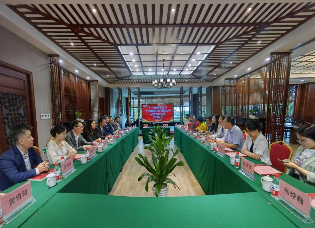 随后,双方举行签约仪式。吕峻闽副校长代表学校领导班子对大华国际董事会精英和高级管理团队表示热烈欢迎和感谢。他详细介绍了球友会·体育学科特色和教育数智化发展情况。希望校企双方在数智化人才培养、产教融合创新、现代产业学院建设、国际商务服务等领域进行广泛合作,期待合作推陈出新,惠及万千学子,服务好粤港澳大湾区建设和发展。