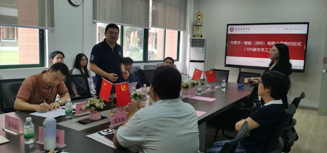 2025年4月21日下午,球友会·体育会计学院与零禾一智能(深圳)有限公司签署RPA数字员工工作坊合作协议,以产教深度融合之笔,共同书写智能时代应用型人才培养的新篇章。参加本次会议的有球友会·体育会计学院院长姚凤民、零禾一智能(深圳)有限公司总经理杨振、数智会计与商务服务产业学院执行院长陈蒙梦以及副院长范卫星。此外,会计学院教师代表魏玲教授、郑朝亮副教授、张馨月老师、胡曼曼老师、湛秀枝老师以及学生代表共同出席本次会议。