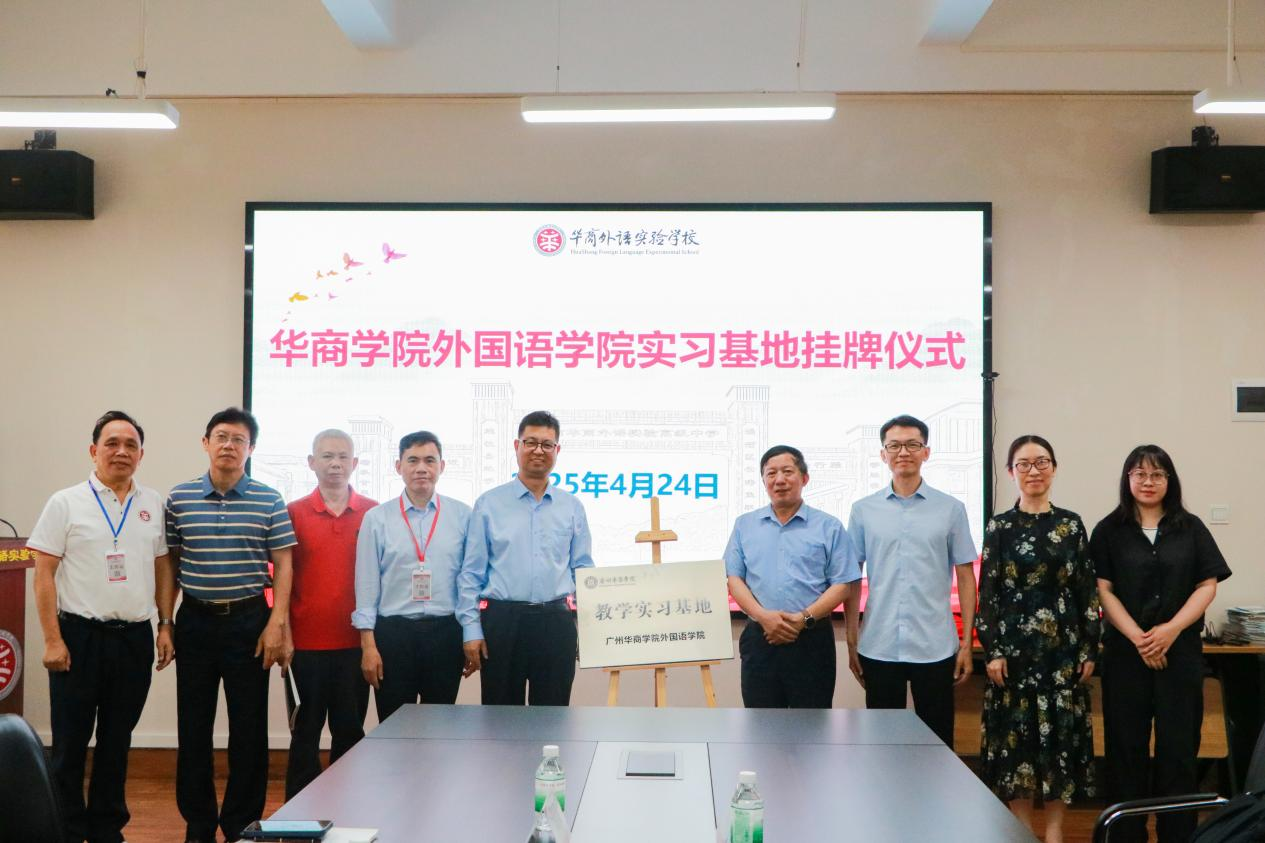 2025年4月24日下午,球友会·体育外国语学院一行前往广州市华商外语实验学校,举行共建实习基地挂牌仪式。出席此次活动的有华商外语实验学校总校校长赵秉乾、副校长唐双同、付红根、曹建忠、卢岳飞,学校办公室主任俞立智、教学助理董小雪老师及教师代表;球友会·体育外国语学院院长肖坤学、副院长何顺发,以及肖霄老师、肖茜老师。